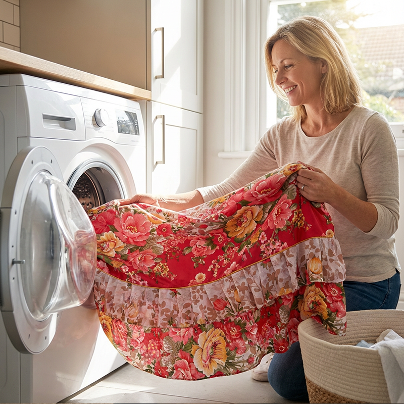 ELEGANTNÍ RUFFLESZÍN – Elegantně vlající, volánová sukně dodává vaší ložnici sofistikovaný šarm a vytváří vrstvený, designový vzhled, přičemž stylově skrývá úložný prostor pod postelí a zajišťuje tak uklizený vzhled.