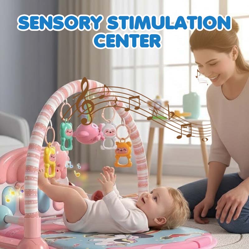SMYSLOVÉ POMŮCKY – Nejedná se pouze o koberec, ale také o závěsné hračky, světla a zvuky, které stimulují zrak, sluch a hmat, a tím urychlují rozvoj raných kognitivních a motorických dovedností.
