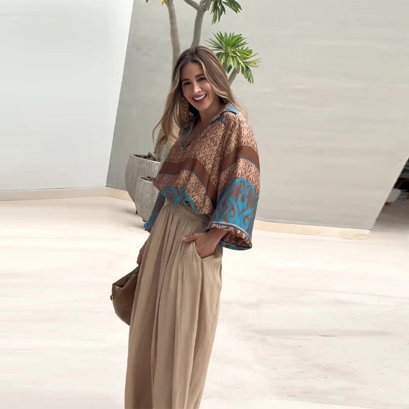 1* Set din două piese cu top imprimat și pantaloni cu picioare largi