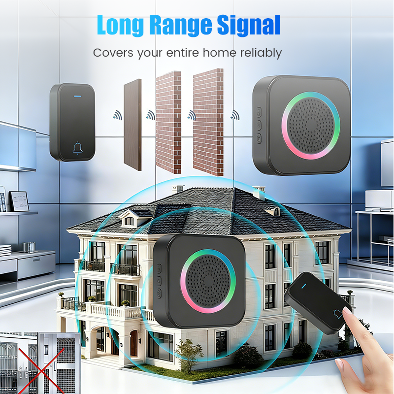 DLOUHODOBÝ BEZDRÁTOVÝ SIGNÁL – Nikdy nezmeškejte žádného návštěvníka, ani v rozlehlém domě. Silný signál snadno prochází stěnami a podlahami a v otevřeném prostoru má dosah až 150 metrů, takže máte kompletní přehled o svém domě.