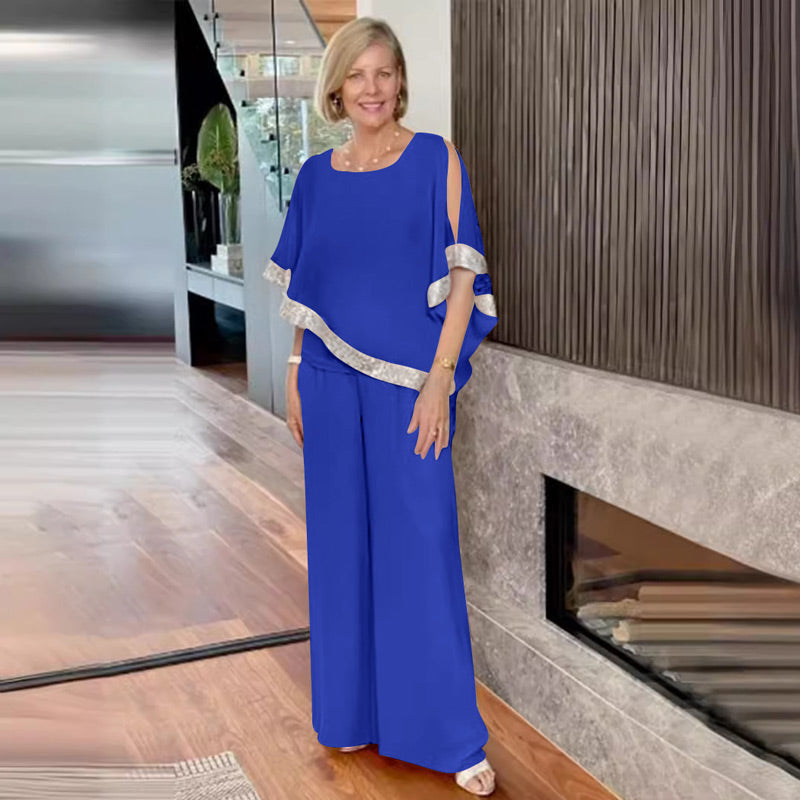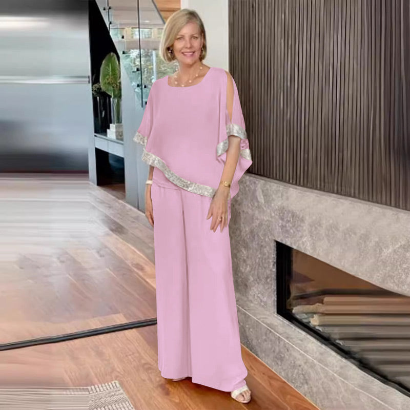 1* Set elegant de două piese pentru femei: top din paiete și pantaloni cu picioare largi